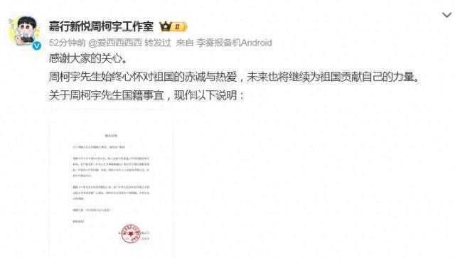 周柯宇也因为新剧频繁上热搜,其中他国籍变化更是引起了众多网友注意,以前是美国籍,这次在片尾演员表中,发现他回归了中国籍。工作室也是第一时间进行说明,确认已经回归中国籍,始终心怀祖国的赤诚与热爱。
